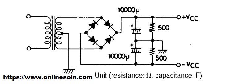 Notes. For power supply at the time of test, use a constant-voltage power supply unless otherwise specified. For measurement of the available time for load shorte-circuit and output noise voltage, use the specified transformer power supply shown right. The output noise voltage is represented by the peak value on rms scale (VTVM) of average value indicating type. For AC power supply, use an AC stabilized power supply (50Hz) to eliminate the effect of flicker noise in AC primary line.
