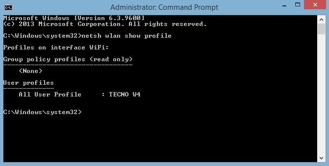 netsh wlan show profile - This command will list out all the WiFi profiles that you have ever connected to.