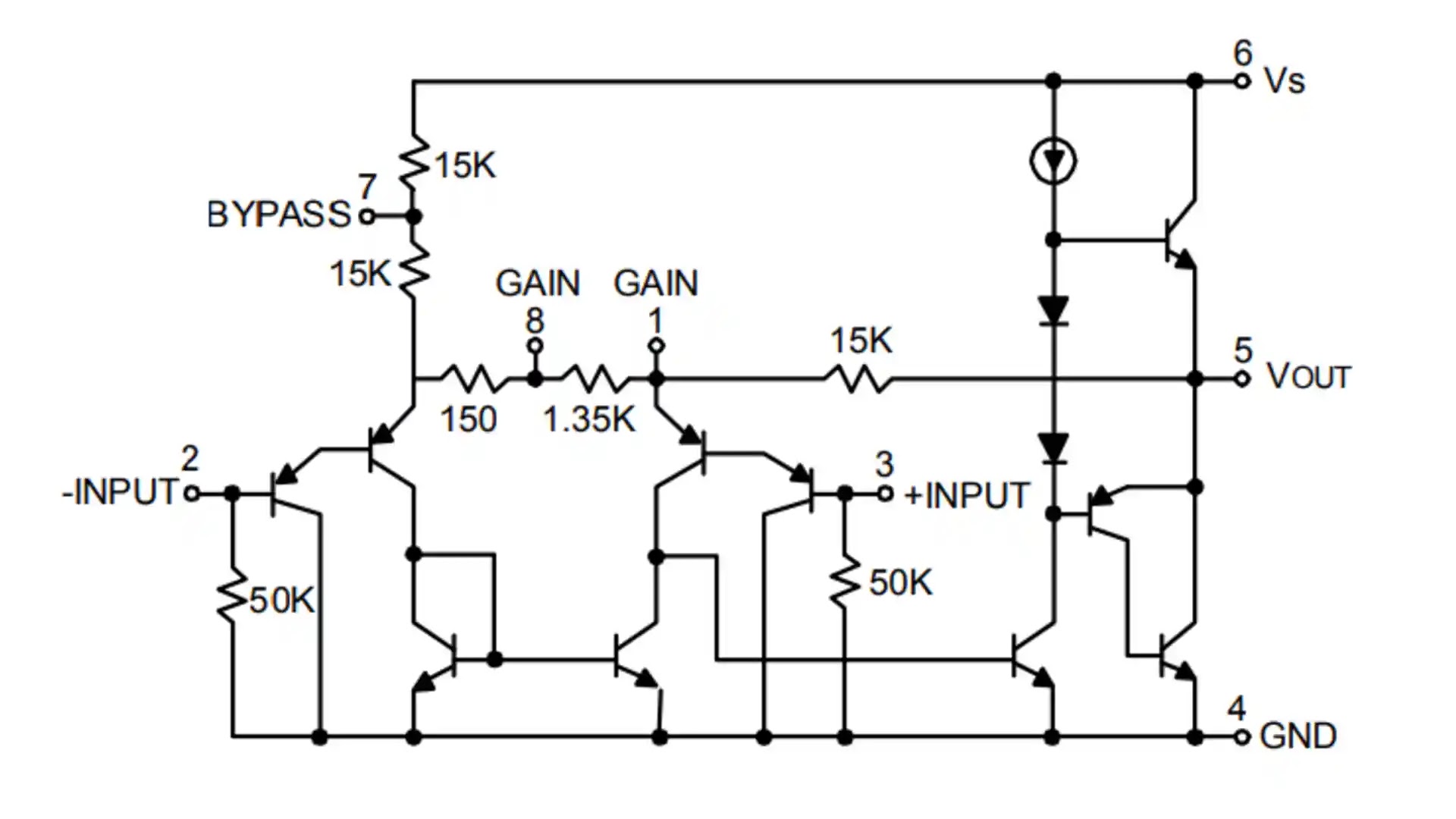 The inputs are ground referenced while the output automatically biases to one-half the supply voltage. The quiescent power drain is only 24 milliwatts when operating from a 6 voltage supply, making the LM386 ideal for battery operation.