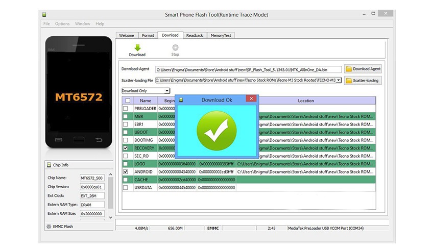 7. It is done and MTK flashTool will do the rest. If you have a problem with flashing utility or drivers install MediaTek USB drivers from our links.