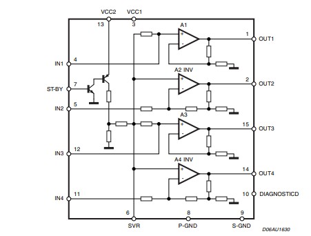 The STA540 is a 4-channel, class AB audio amplifier designed for high quality sound applications. The amplifiers have single-ended outputs with integrated short-circuit protection, thermal protection and diagnostic functions.